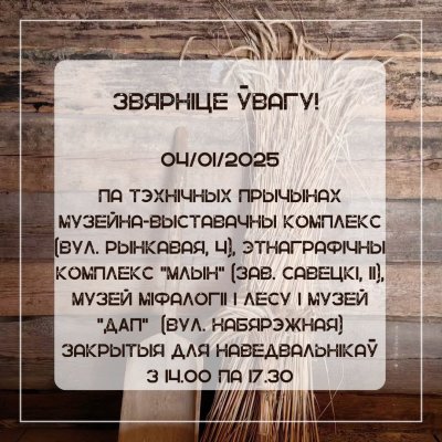 Просім звярнуць вашу ўвагу, што ў пятніцу 26 верасня 2025 Музей беларускай маляванкі адкрыты для наведвання да 18/00.